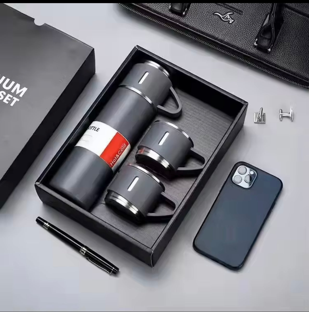 Termoes de acero inoxidable 16.9 fl oz/16.9oz botella aislada al vacío con taza para café bebida caliente y botella de agua fría